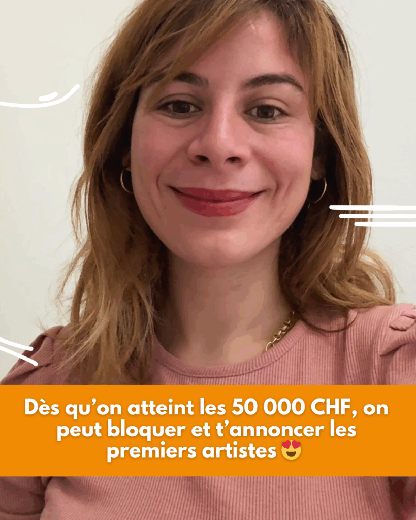 En participant à cette campagne, tu deviendras un acteur essentiel de cette aventure humaine. Il est la mise de départ qui nous permet de couvrir les frais d’organisation initiaux (logistique, production, sécurité…), de payer les premiers acomptes pour les artistes et de garantir la tenue du festival. Ces premiers frais s’élèvent à 50 000 CHF. Sans ton soutien, cette aventure unique ne peut pas démarrer.